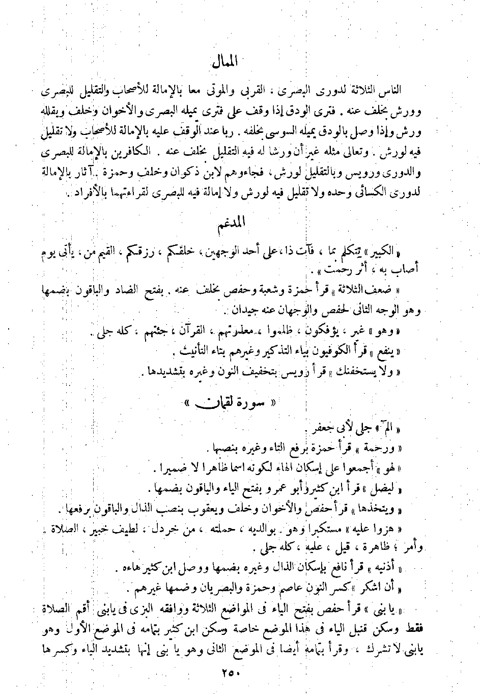 " يا بني " قرأ حفص بفتح الياء في المواضع الثلاثة ووافقه البزي في يا بني أقم الصلاة فقط وسكن قنبل الياء في هذا الموضع خاصة وسكن ابن كثير بتمامه في الموضع الأول وهو يا بني لا تشرك، وقرأ بتمامه أيضا في الموضع الثاني وهو يا بني إنها بتشديد الياء وكسرها