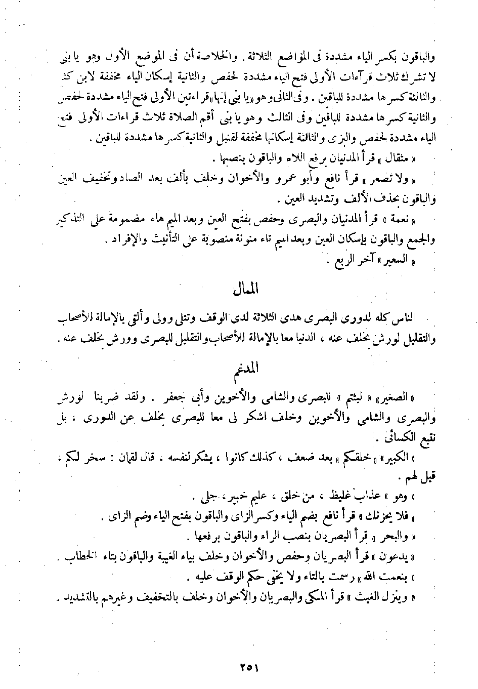 " الصغير " " لبثتم " للبصري والشامي والأخوين وأبي جعفر. ولقد ضربنا لورش والبصري والشامي والأخوين وخلف اشكر لي معا للبصري بخلف عن الدوري، بل نتبع الكسائي.