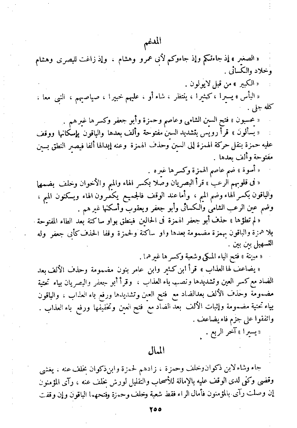 " يسألون " قرأ رويس بتشديد السين مفتوحة وألف بعدها والباقون بإسكانها ووقف عليه حمزة بنقل حركة الهمزة إلى السين وحذف الهمزة وعنه إبدالها ألفا فيصير النطق بسين مفتوحة وألف بعدها.