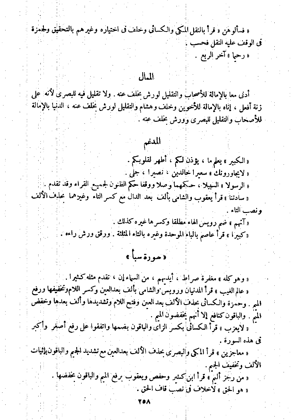 " كبيرا " قرأ عاصم بالباء الموحدة وغيره بالثاء المثلثة. ورقق ورش راءه.