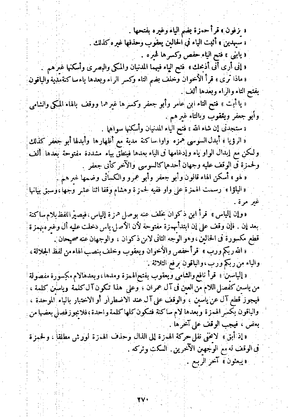 " إلياسين " قرأ نافع والشامي ويعقوب بفتح الهمزة ومدها، وبعدها لام مكسورة مفصولة من ياسين كفصل اللام من العين في آل عمران؛ وعلى هذا تكون آل كلمة وياسين كلمة، فيجوز قطع آل عن ياسين، والوقف على آل عند الاضطرار أو الاختبار بالباء الموحدة، والباقون بكسر الهمزة وبعدها لام ساكنة فتكون كلها كلمة واحدة، فلا يجوز فصل بعضها من بعض، فيجب الوقف على آخرها.