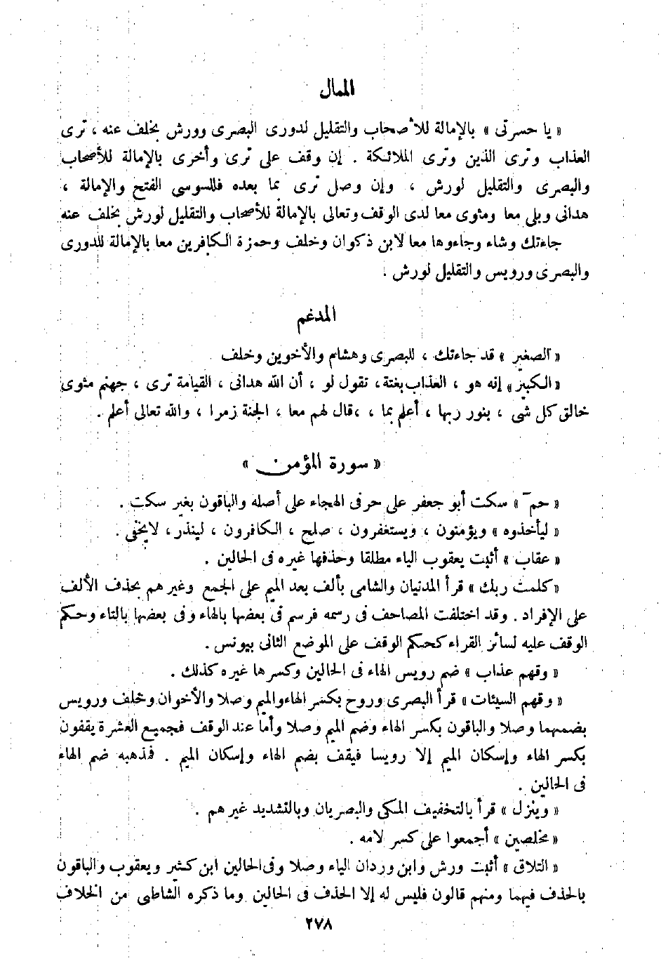 " يا حسرتى " بالإمالة للأصحاب والتقليل لدوري البصري وورش بخلف عنه، ترى العذاب وترى الذين وترى الملائكة. وإن وقف على ترى وأخرى بالإمالة للأصحاب والبصري والتقليل لورش، وإن وصل ترى بما بعده فللسوسي الفتح والإمالة هداني وبلى معا ومثوى معا لدى الوقف وتعالى بالإمالة للأصحاب والتقليل لورش بخلف عنه جاءتك وشاء وجاءوها معا لابن ذكوان وخلف وحمزة الكافرين معا بالإمالة للدوري والبصري ورويس والتقليل لورش.