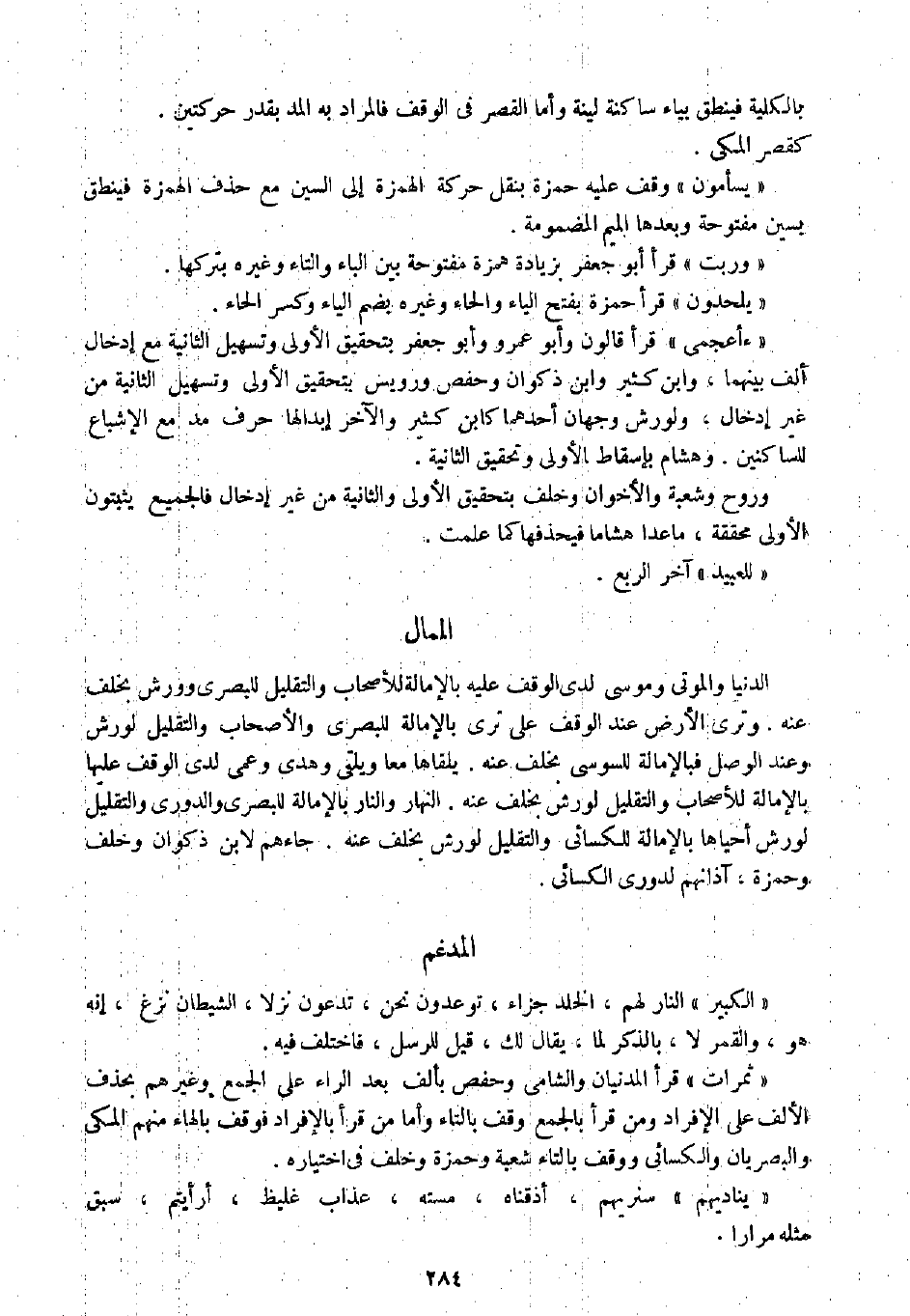 بالكلية فينطق بياء ساكنة لينة وأما القصر في الوقف فالمراد به المد بقدر حركتين.