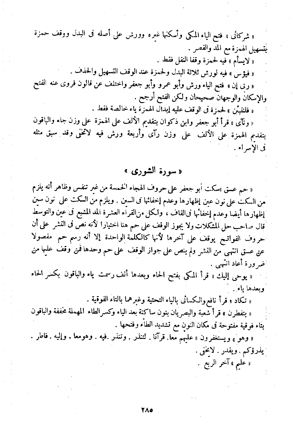 " وهو " " ويستغفرون "عليهم معا. قرآنا. لتنذر. وتنذر. فيه. وهو معا. وإليه. فاطر. يذرؤكم. ويقدر. لايخفى.