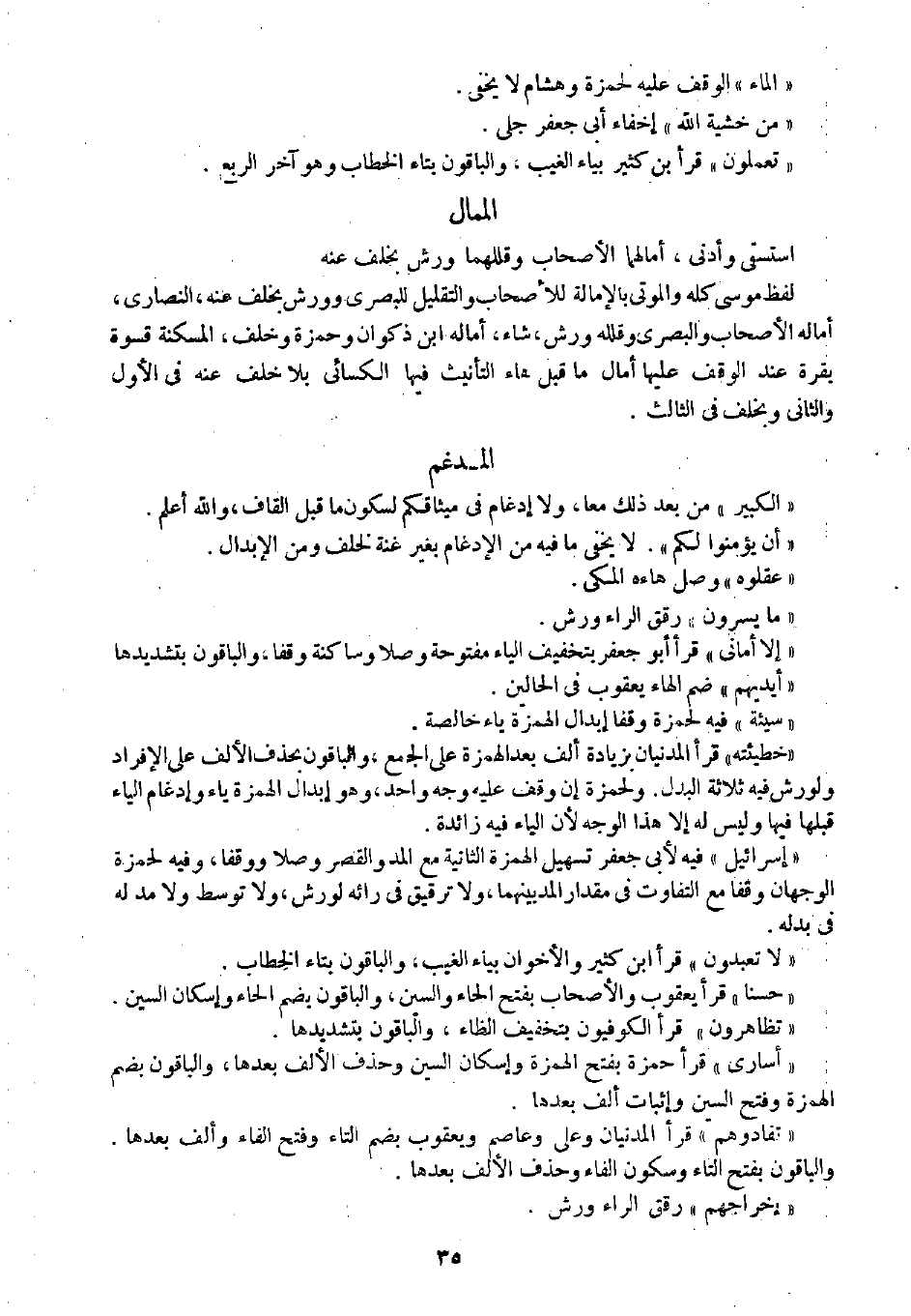لفظ موسى كله والموتى بالإمالة للأصحاب والتقليل للبصري وورش بخلف عنه، النصارى، أماله الأصحاب والبصري وقلله ورش، شاء، أماله ابن ذكوان وحمزة وخلف، المسكنة، قسوة، بقرة، عند الوقف عليها أمال ما قبل هاء التأنيث فيها الكسائي بلا خلف عنه في الأول والثاني وبخلف في الثالث.