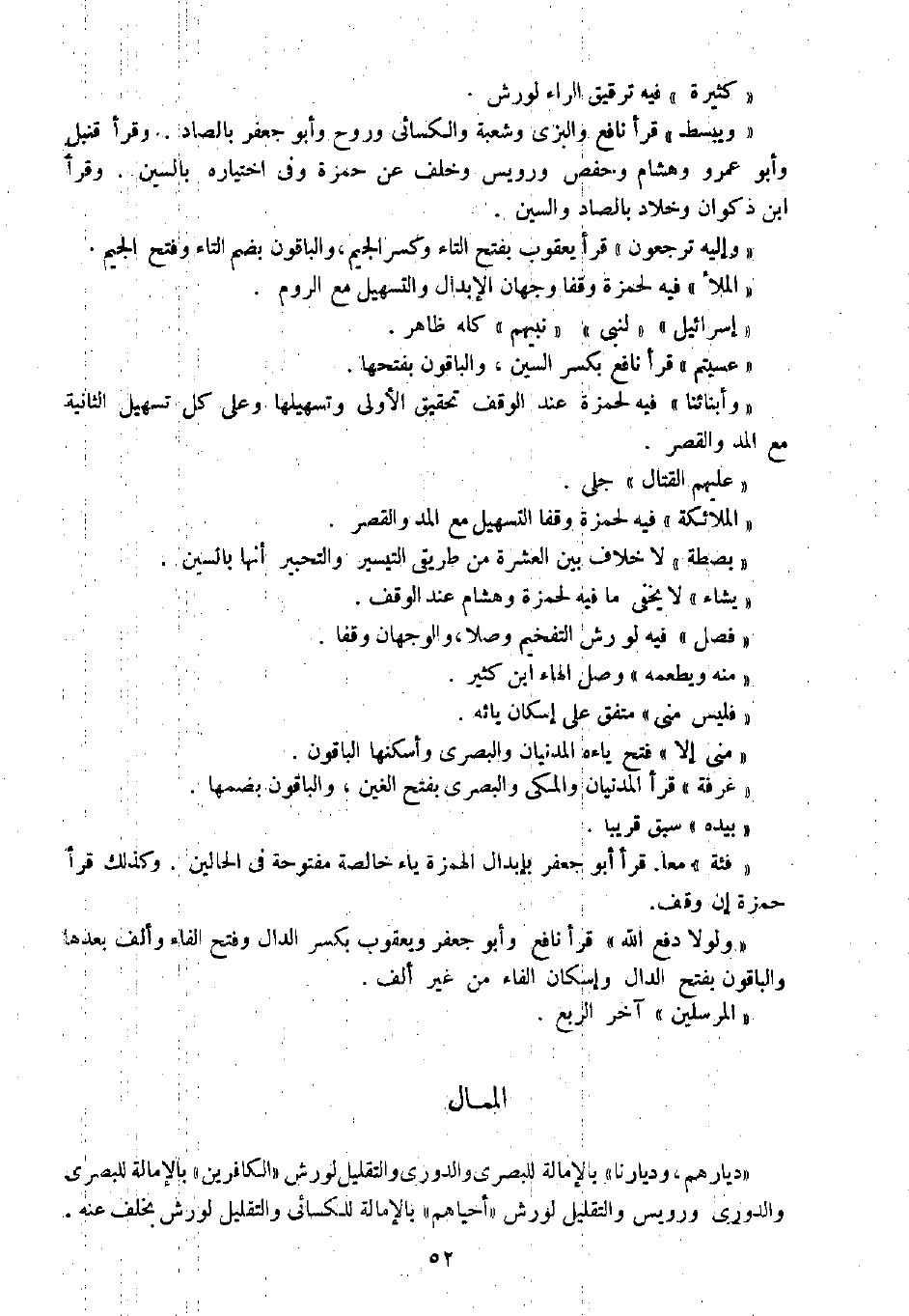 " ديارهم، وديارنا " بالإمالة للبصري والدوري والتقليل لورش " الكافرين " بالإمالة للبصري والدوري ورويس والتقليل لورش " أحياهم " بالإمالة للكسائي والتقليل لورش بخلف عنه.