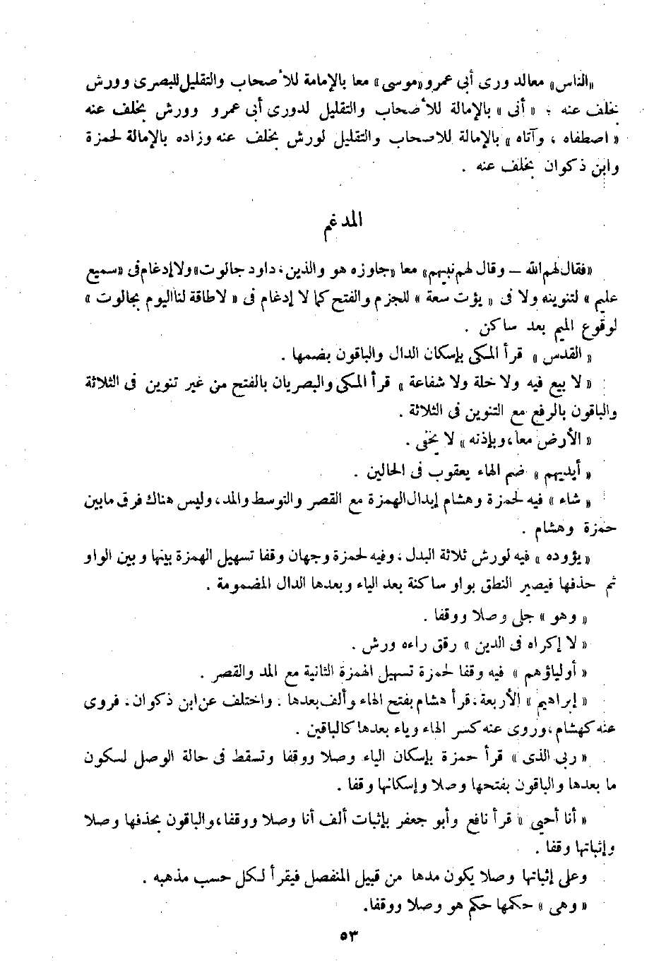 " فقال لهم الله - وقال لهم نبيهم " معا " جاوزه هو والذين، داود جالوت " ولا إدغام في " سميع عليم " لتنوينه ولا في " يؤت سعة " للجزم والفتح كما لا إدغام في " لا طاقة لنا اليوم بجالوت " لوقوع الميم بعد ساكن.