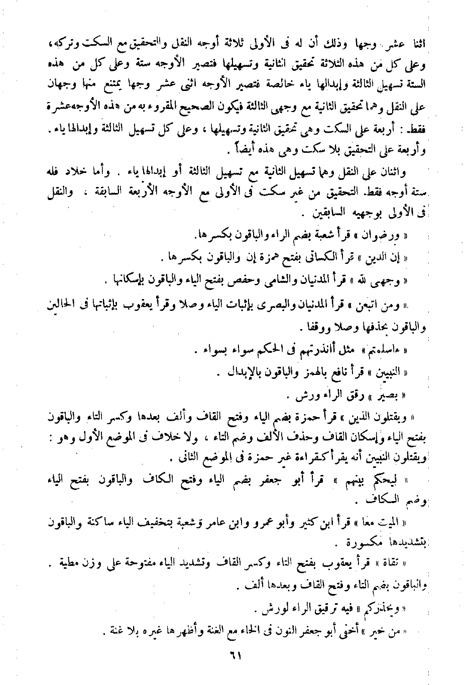 " تقاه " قرأ يعقوب بفتح التاء وكسر القاف وتشديد الياء مفتوحة على وزن مطية والباقون بضم التاء وفتح القاف وبعدها ألف.