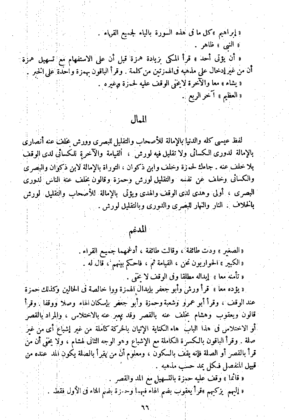 " يؤده معا " قرأ ورش وأبو جعفر بإبدال الهمزة ووا خالصة في الحالين وكذلك حمزة عند الوقف، وقرأ أبو عمرو وشعبة وحمزة وأبو جعفر بإسكان الهاء وصلا ووقفا. وقرأ قالون ويعقوب وهشام بخلف عنه بالقصر وقد يعبر عنه بالاختلاس، والمراد بالقصر أو الاختلاس في هذا الباب هاء الكناية الإتيان بالحركة كاملة من غير إشباع أي من غير صلة. وقرأ الباقون بالكسرة الكاملة مع الإشباع وهو الوجه الثاني لهشام، ولا يخفى أن من قرأ بالقصر أو الصلة فإنه يقف بالسكون، ومعلوم أن من يقرأ بالصلة يكون المد عنده من قبيل المنفصل فكل يمد حسب مذهبه.