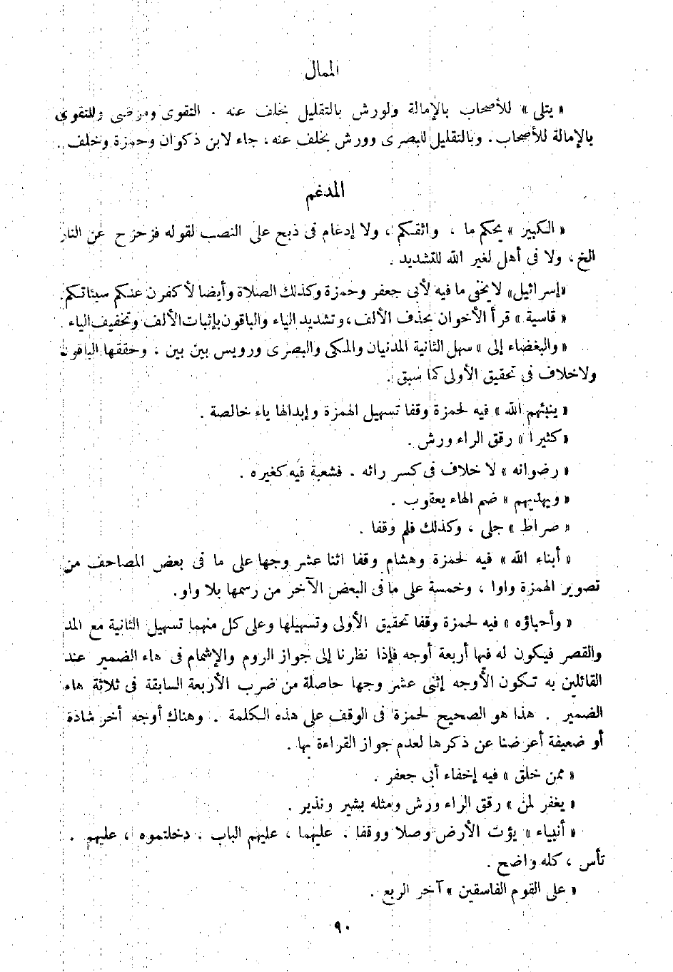 " يتلى " للأصحاب بالإمالة ولورش بالتقليل بخلف عنه، التقوى ومرضى وللتقوى بالإمالة للأصحاب، وبالتقليل للبصري وورش بخلف عنه، جاء لابن ذكوان وحمزة وخلف.