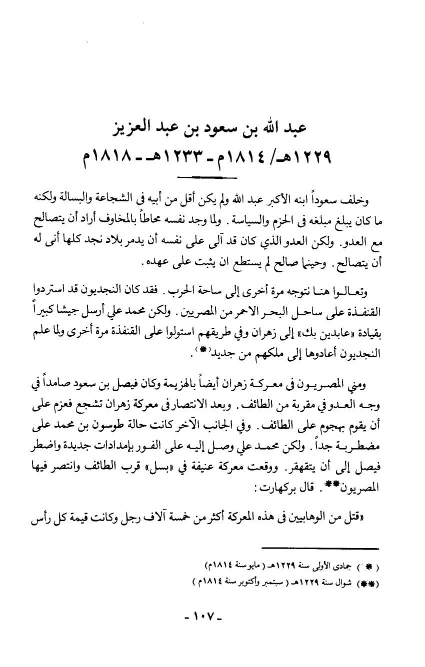 وتعالوا هنا نتوجه مرة أخرى إلى ساحة الحرب. فقد كان النجديون قد استردوا القنفذة على ساحل البحر الأحمر من المصريين، ولكن محمد علي أرسل جيشا كبيرا بقيادة "عابدين بك" إلى زهران، وفي طريقهم استولوا على القنفذة مرة أخرى، ولما علم النجديون أعادوها إلى ملكهم من جديد 1.