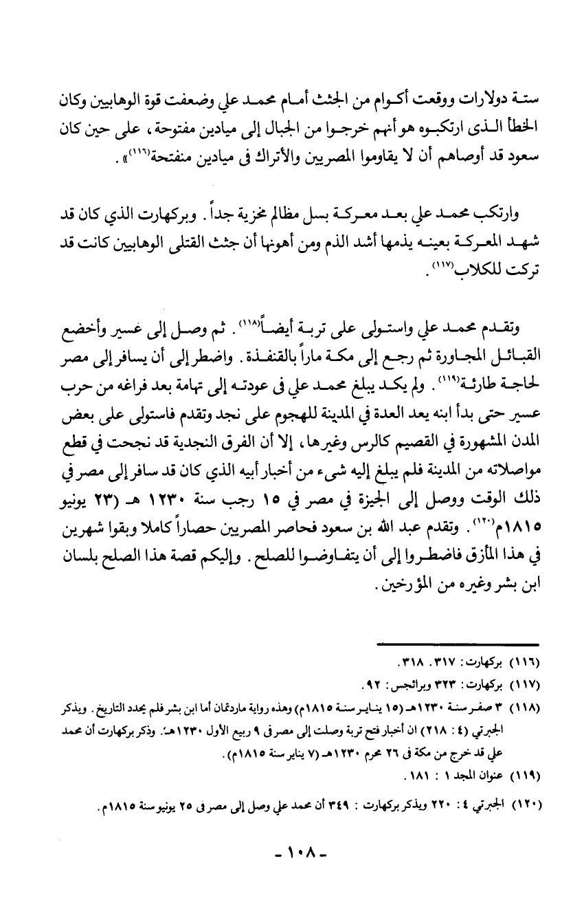 5 الجبرتي 4: 220 ويذكر بركهارت: 349 أن محمد علي وصل إلى مصر في 25 يونيو سنة 1815 م