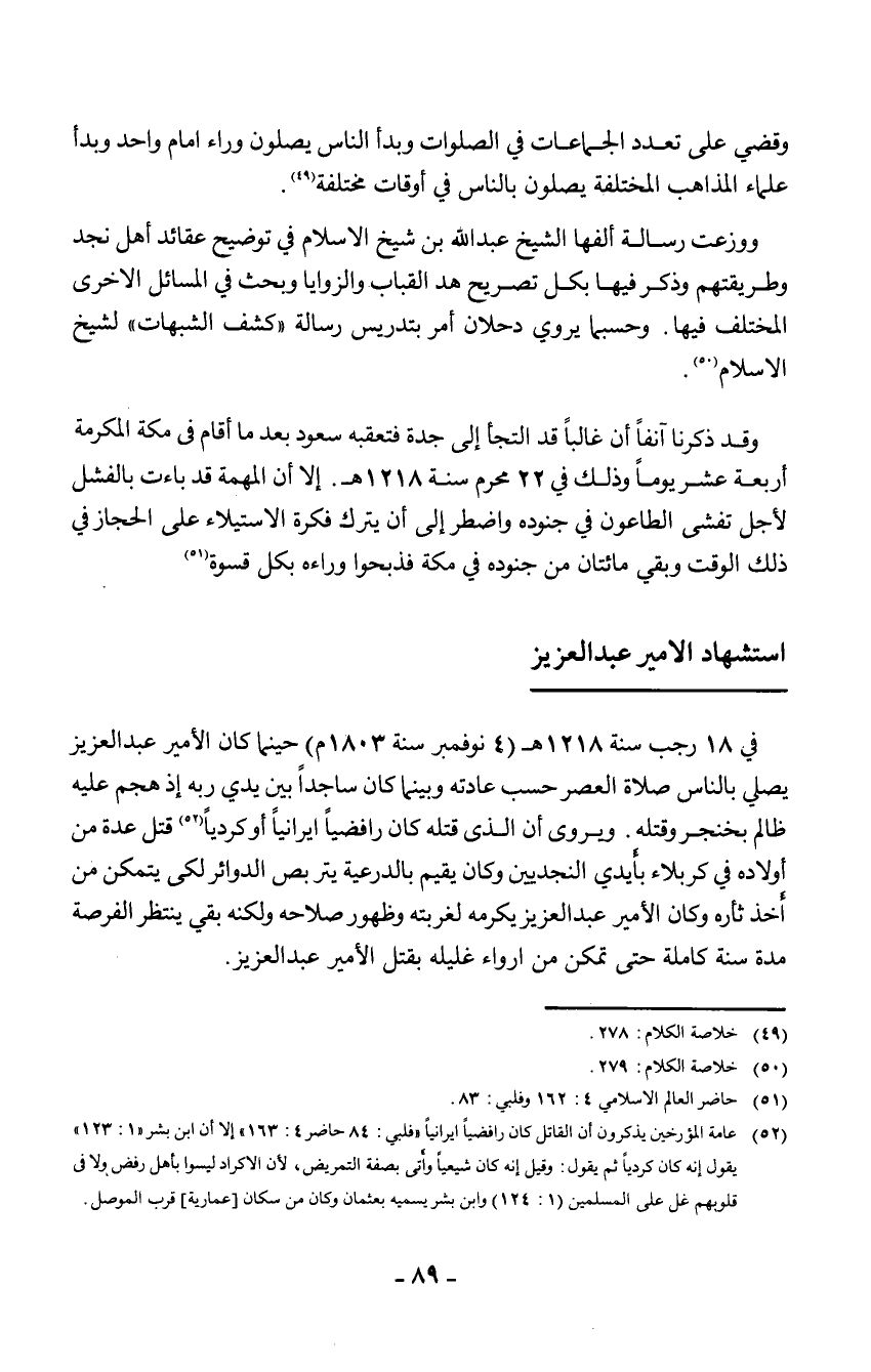 ووزعت رسالة ألفها الشيخ عبد الله بن شيخ الإسلام في توضيح عقائد أهل نجد وطريقتهم، وذكر فيها بكل تصريح هدم القباب والزوايا وبحث في المسائل الأخرى المختلف فيها. وحسبما يروي دحلان أمر بتدريس رسالة "كشف الشبهات" لشيخ الإسلام.2