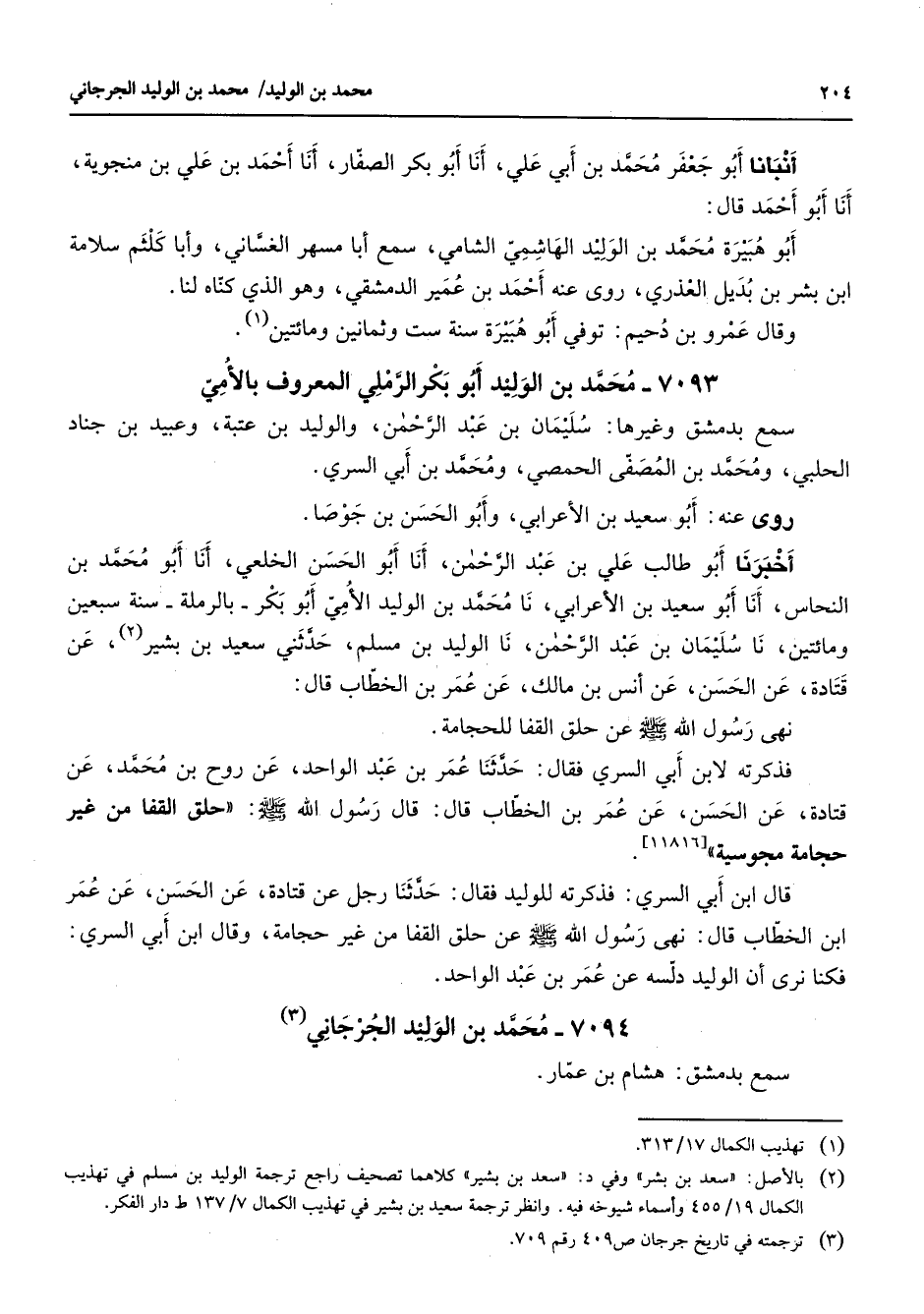7094 - محمد بن الوليد الجرجاني (3) سمع بدمشق هشام بن عمار