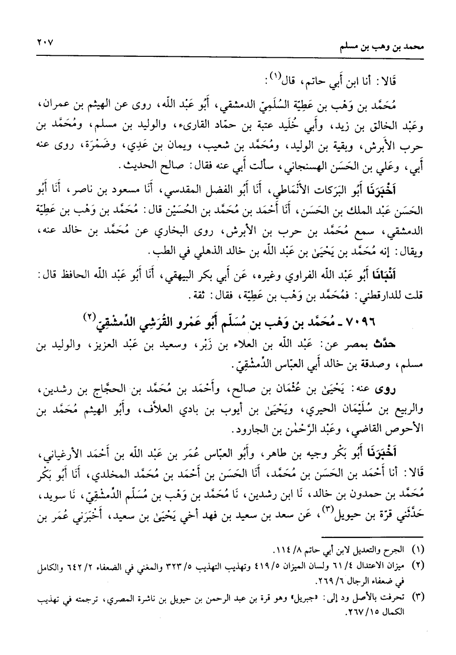 (1) الجرح والتعديل لابن أبي حاتم 8 / 114