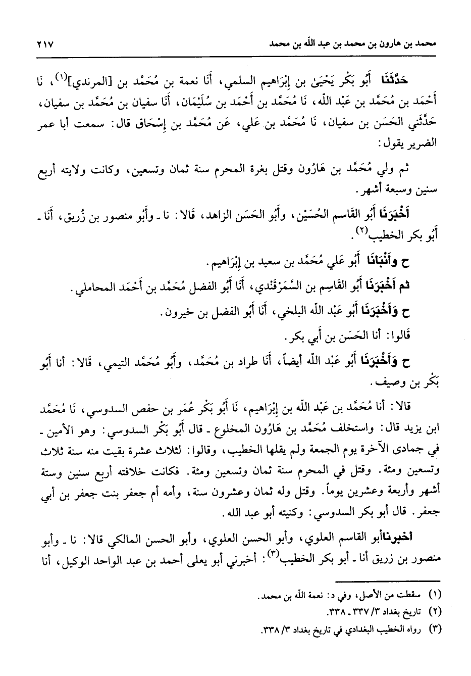 (2) تاريخ بغداد 3 / 337 - 338