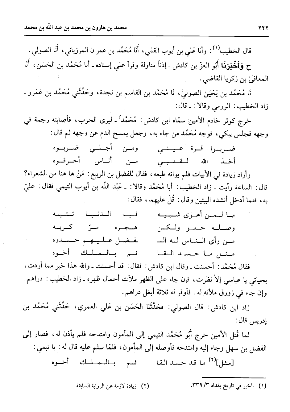 (1) الخبر في تاريخ بغداد 3 / 339