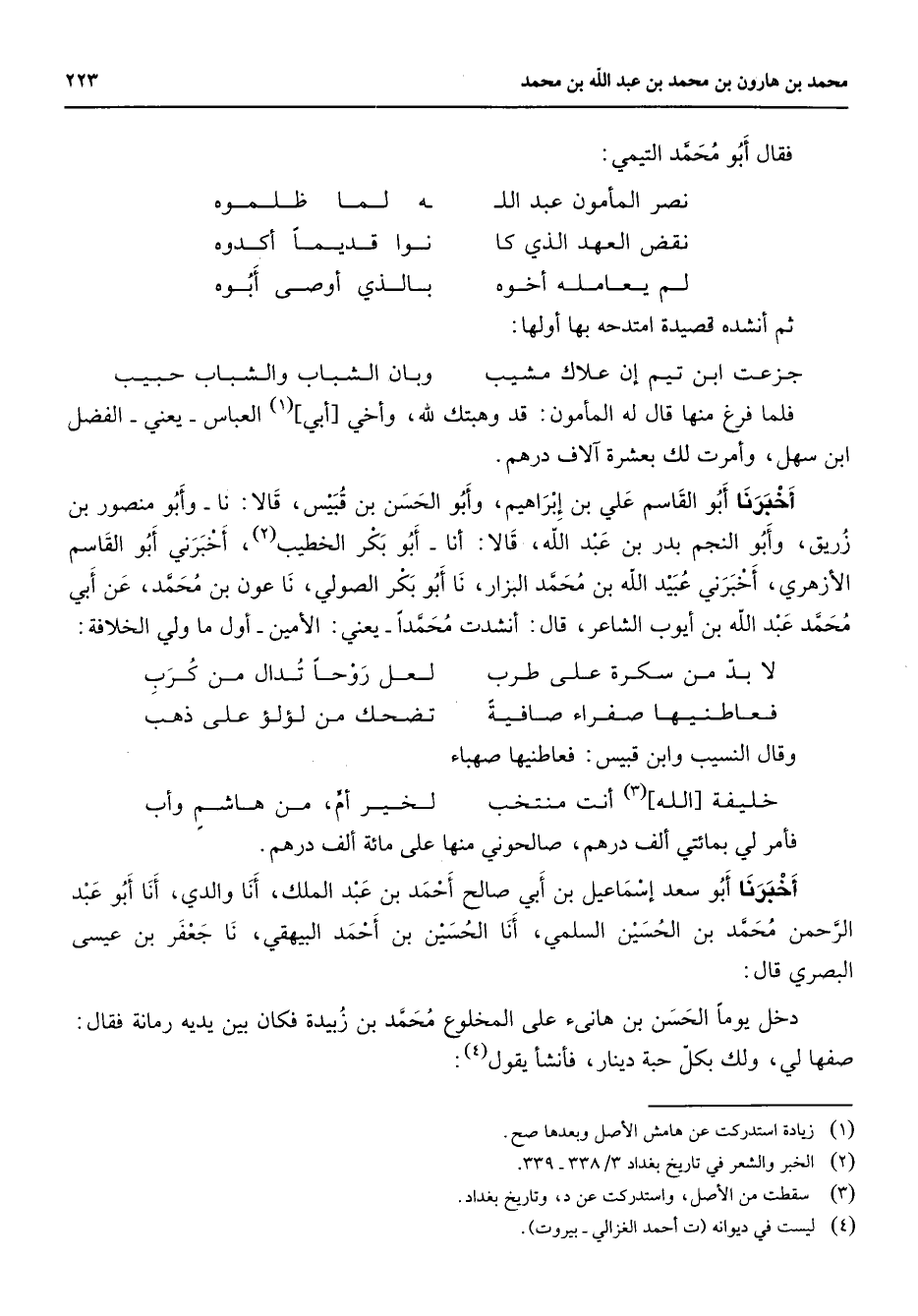 (2) الخبر والشعر في تاريخ بغداد 3 / 338 - 339