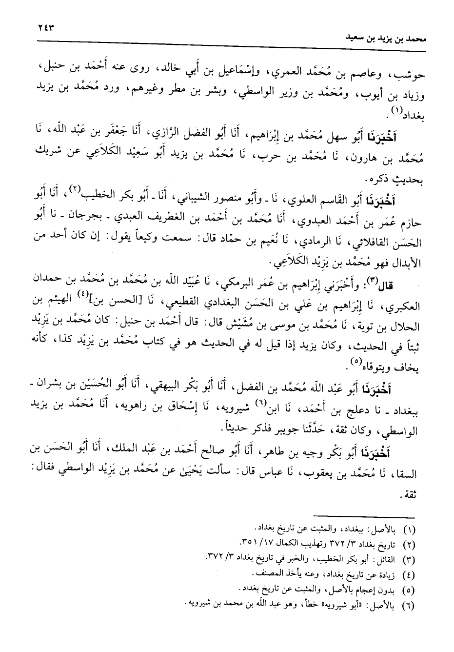 (1) بالاصل: ببغداد والمثبت عن تاريخ بغداد