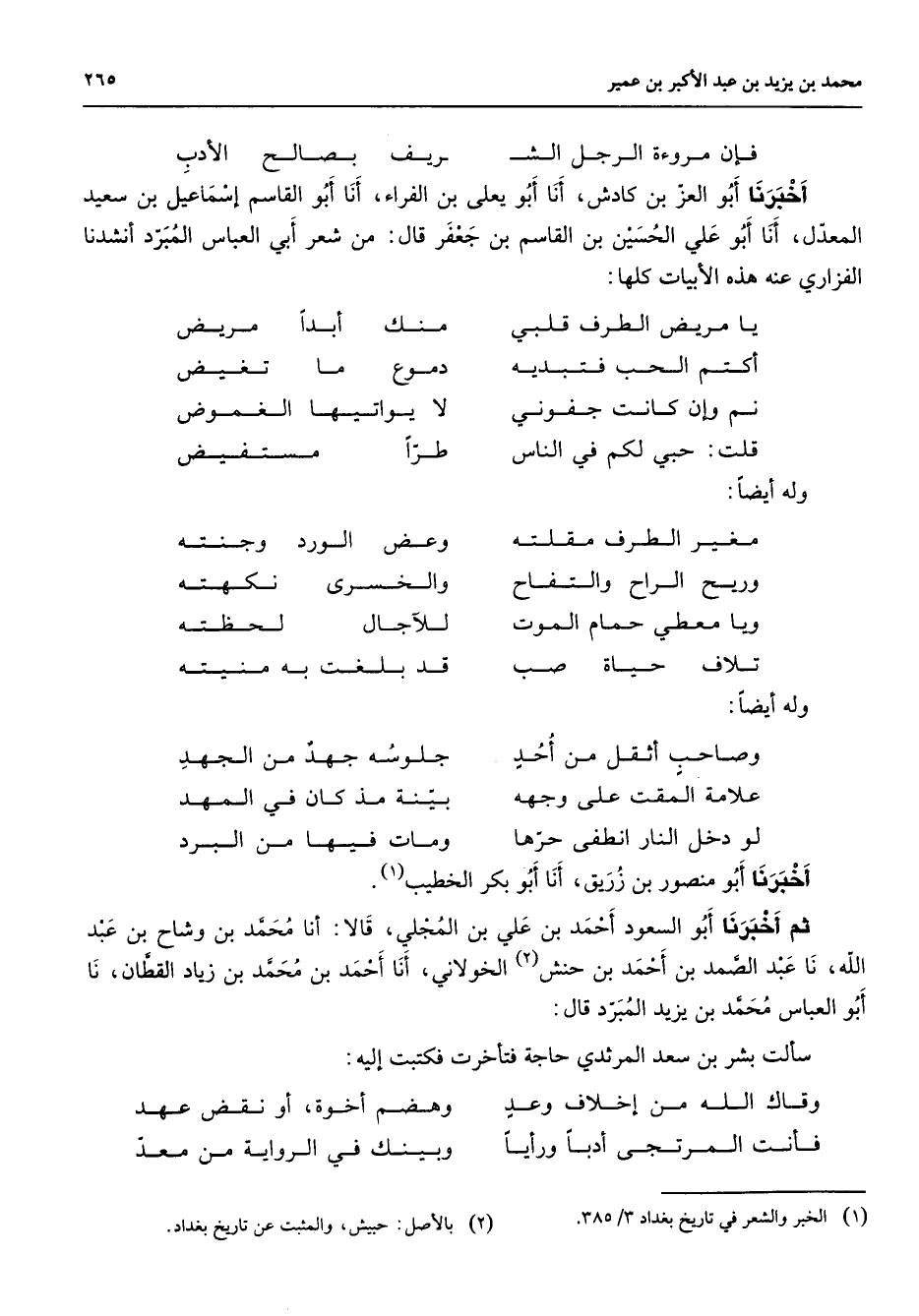 (1) الخبر والشعر في تاريخ بغداد 3 / 385