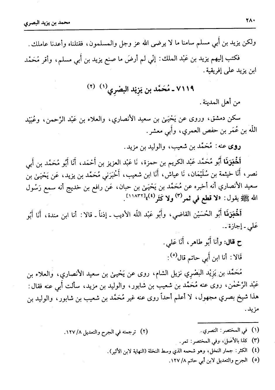 (5) الجرح والتعديل لابن أبي حاتم 8 / 127