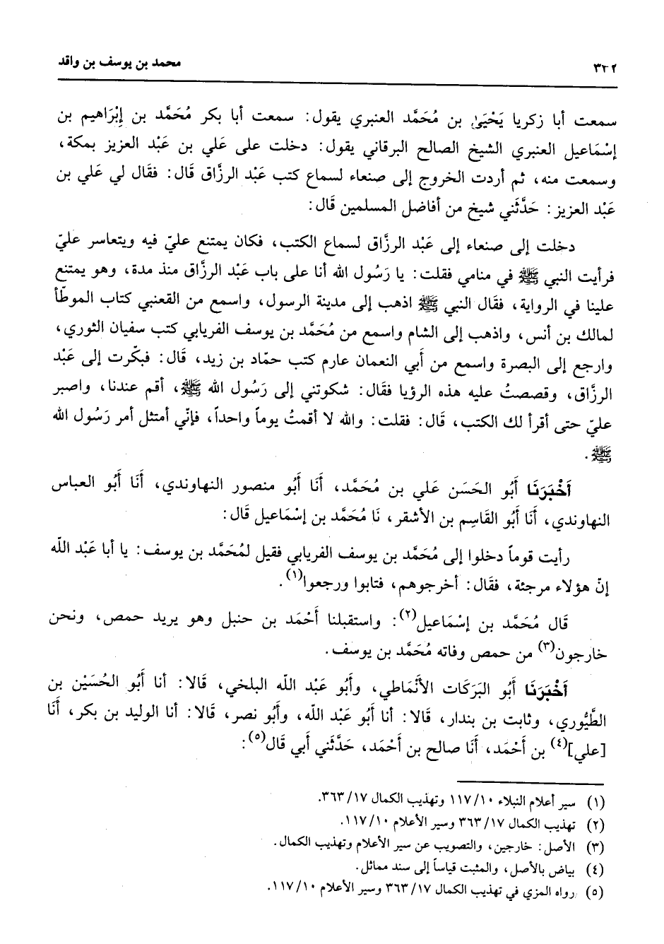 (5) رواه المزي في تهذيب الكمال 17 / 363 وسير الاعلام 10 / 117