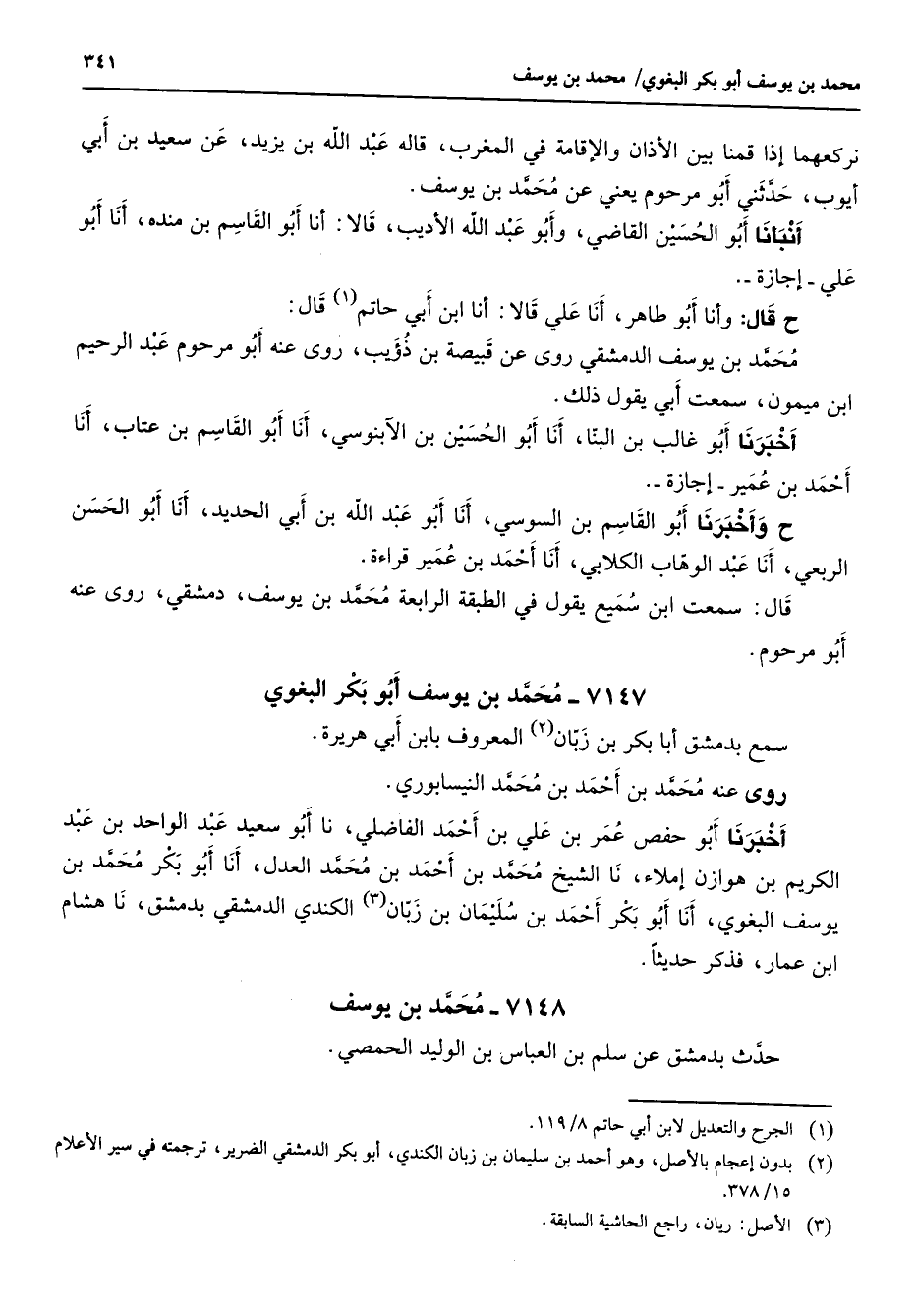 (1) الجرح والتعديل لابن أبي حاتم 8 / 119