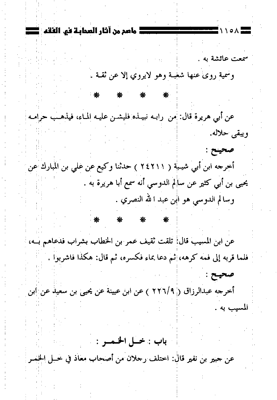 عن أبي هريرة قال: من رابه نبيذه فليشن عليه الماء، فيذهب حرامه ويبقى حلاله.