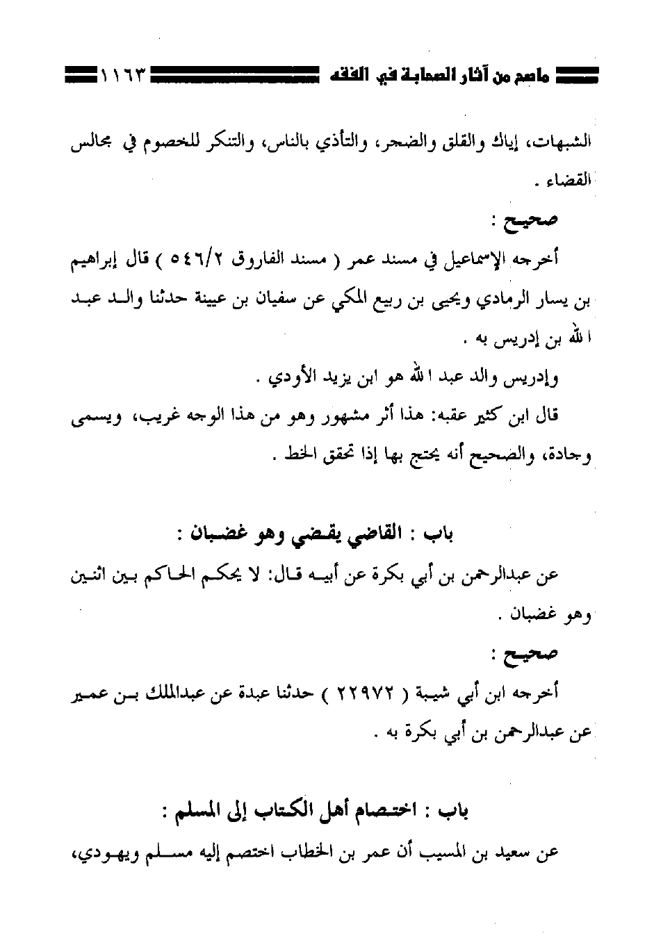 عن عبد الرحمن بن أبي بكرة عن أبيه قال، لا يحكم الحاكم بين اثنين وهو غضبان.