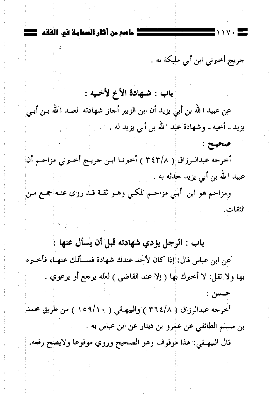عن عبيد الله بن أبي يزيد أن ابن الزبير أجاز شهادته لعبد الله بن أبي يزيد -أخيه- وشهادة عبد الله بن أبي يزيد له.