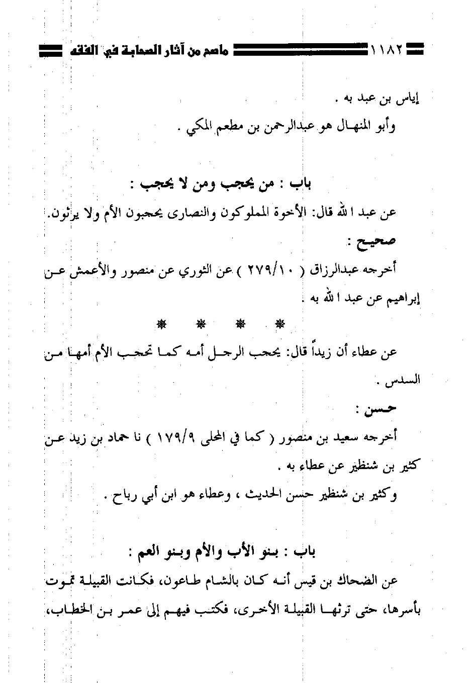 عن عبد الله قال: الأخوة المملوكون والنصارى يحجبون الأم ولا يرثون.