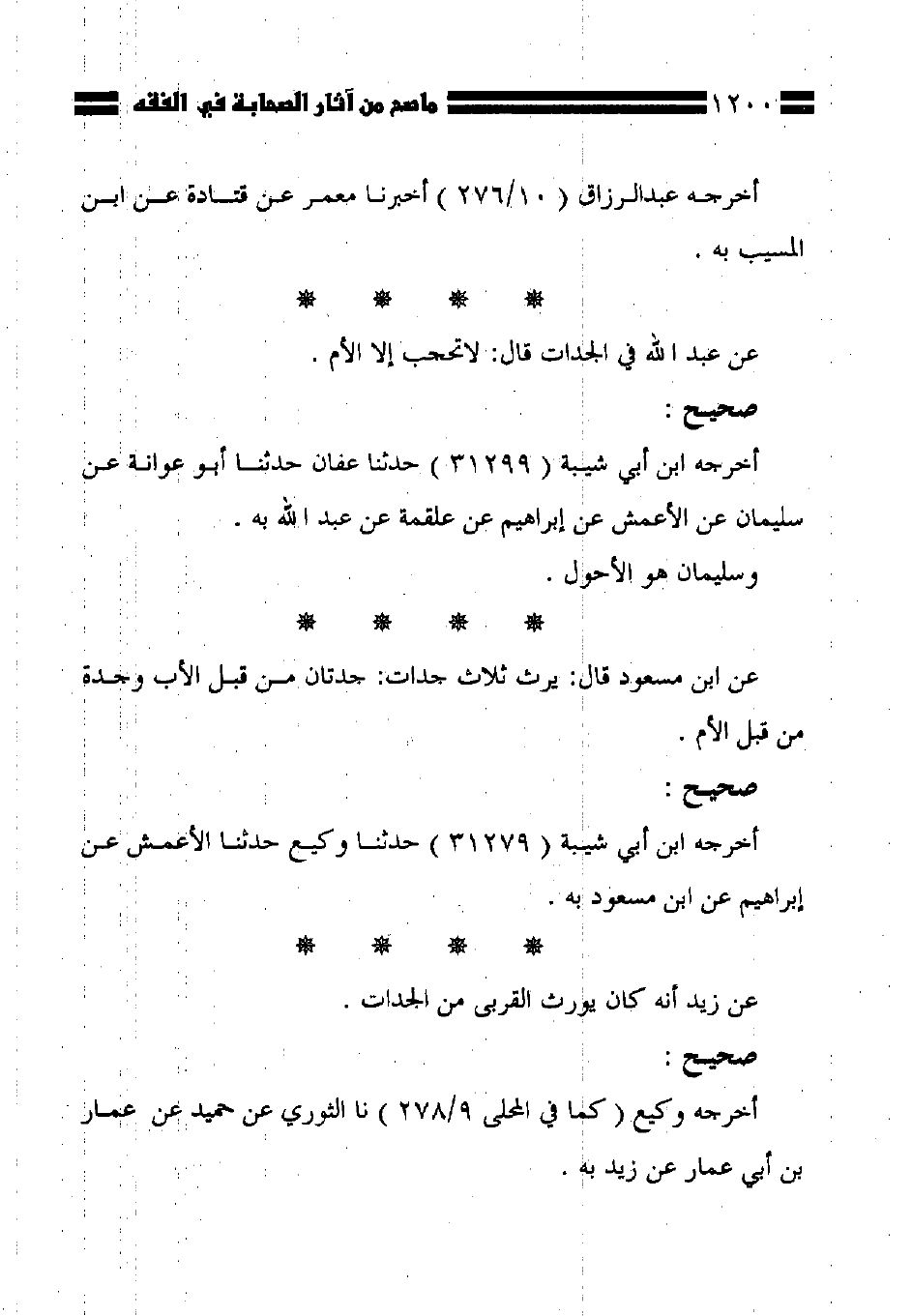 عن ابن مسعود قال: يرث ثلاث جدات: جدتان من قبل الأب وجدة من قبل الأم.