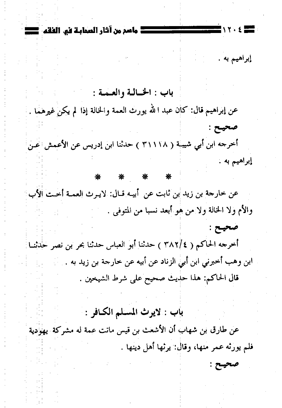 عن إبراهيم قال: كان عبد الله يورث العمة والخالة إذا لم يكن غيرهما.