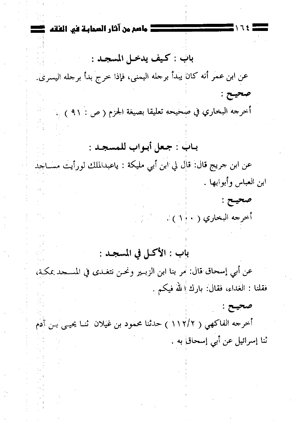 عن ابن جريج قال: قال لي ابن أبي مليكة: يا عبد الملك لو رأيت مساجد ابن العباس وأبوابها.