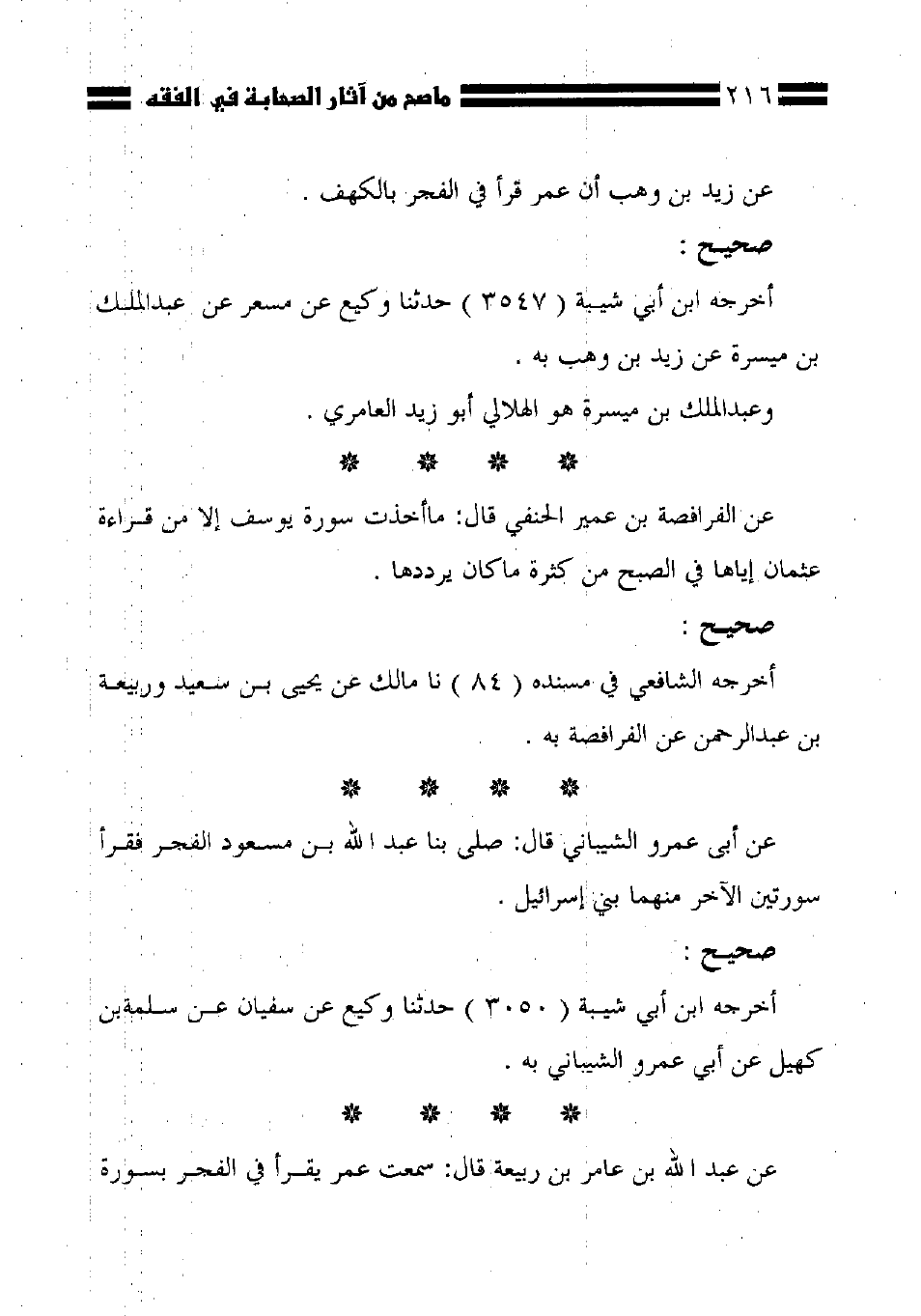 عن زيد بن وهب أن عمر قرأ في الفجر بالكهف.
