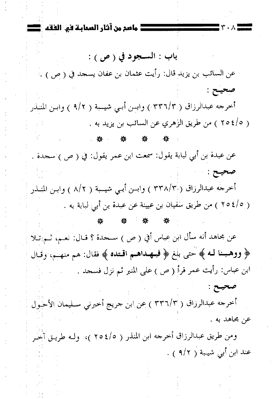 عن السائب بن يزيد قال: رأيت عثمان بن عفان يسجد في (ص).