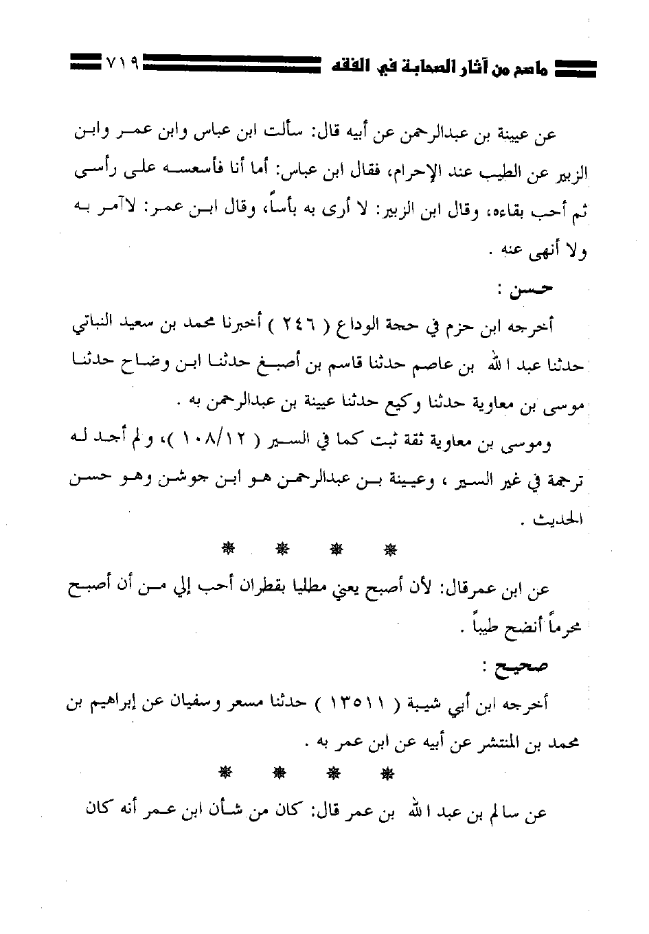 أخرجه ابن حزم ي حجة الوداع (246) أخبرنا محمد بن سعيد النباتي حدثنا عبد الله بن عاصم حدثنا قاسم بن أصبغ حدثنا ابن وضاح حدثنا موسى بن معاوية حدثنا وكيع حدثنا عيينة بن عبد الرحمن به.