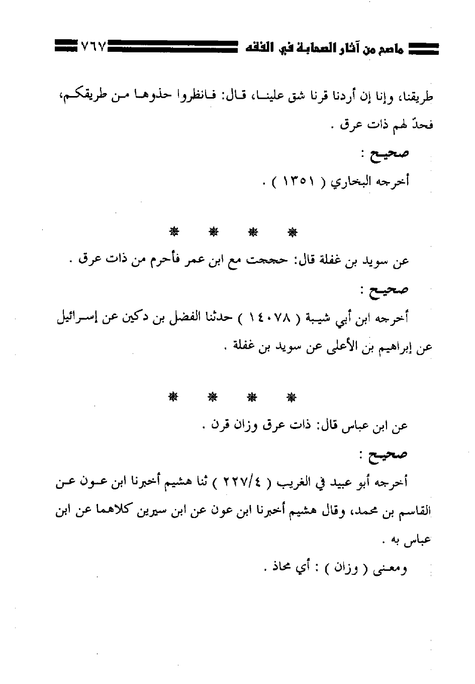 عن ابن عباس قال: ذات عرق وزان قرن.