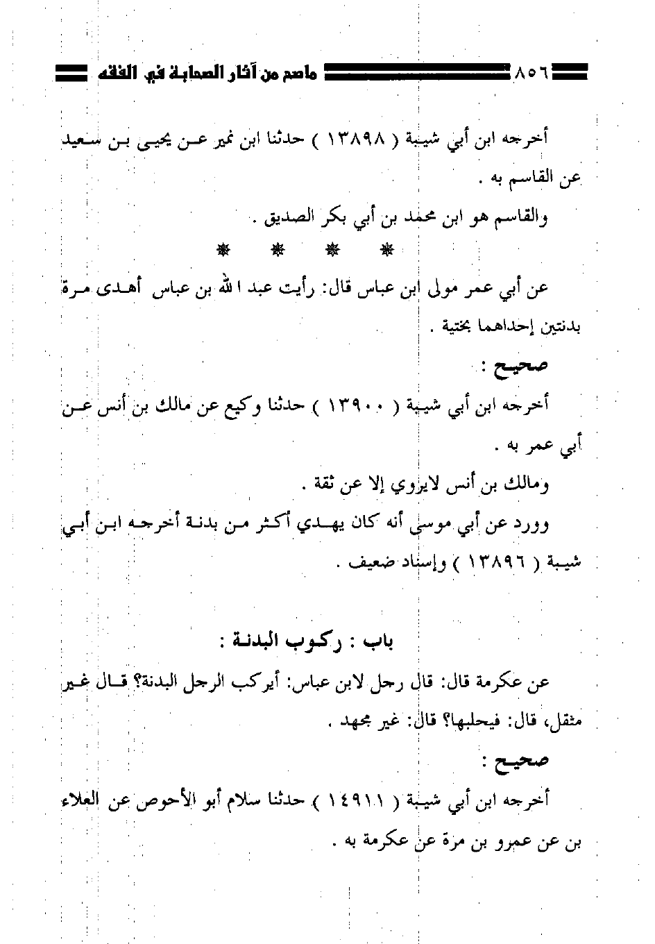 عن أبي عمر مولى ابن عباس قال: رأيت عبد الله بن عباس أهدى مرة بدنتين إحداهما بختية.