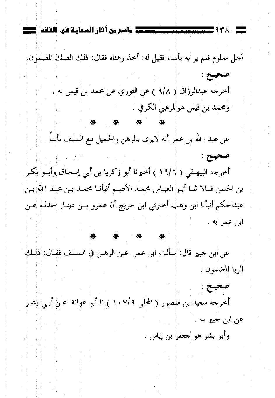 عن ابن جبير قال: سألت ابن عمر عن الرهن في السلف فقال: ذلك الربا المضمون.