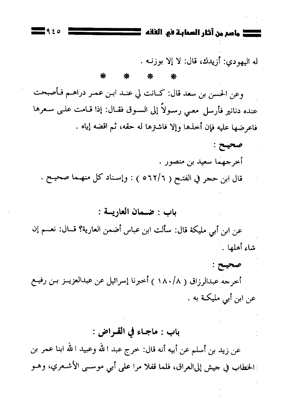 وعن الحسن بن سعد قال: كانت لي عند ابن عمر دراهم فأصبحت عنده دنانير فأرسل معي رسولًا إلى السوق فقال: إذا قامت على سعرها فاعرضها عليه فإن أخذها وإلا فاشترها له حقه، ثم اقضه إياه.