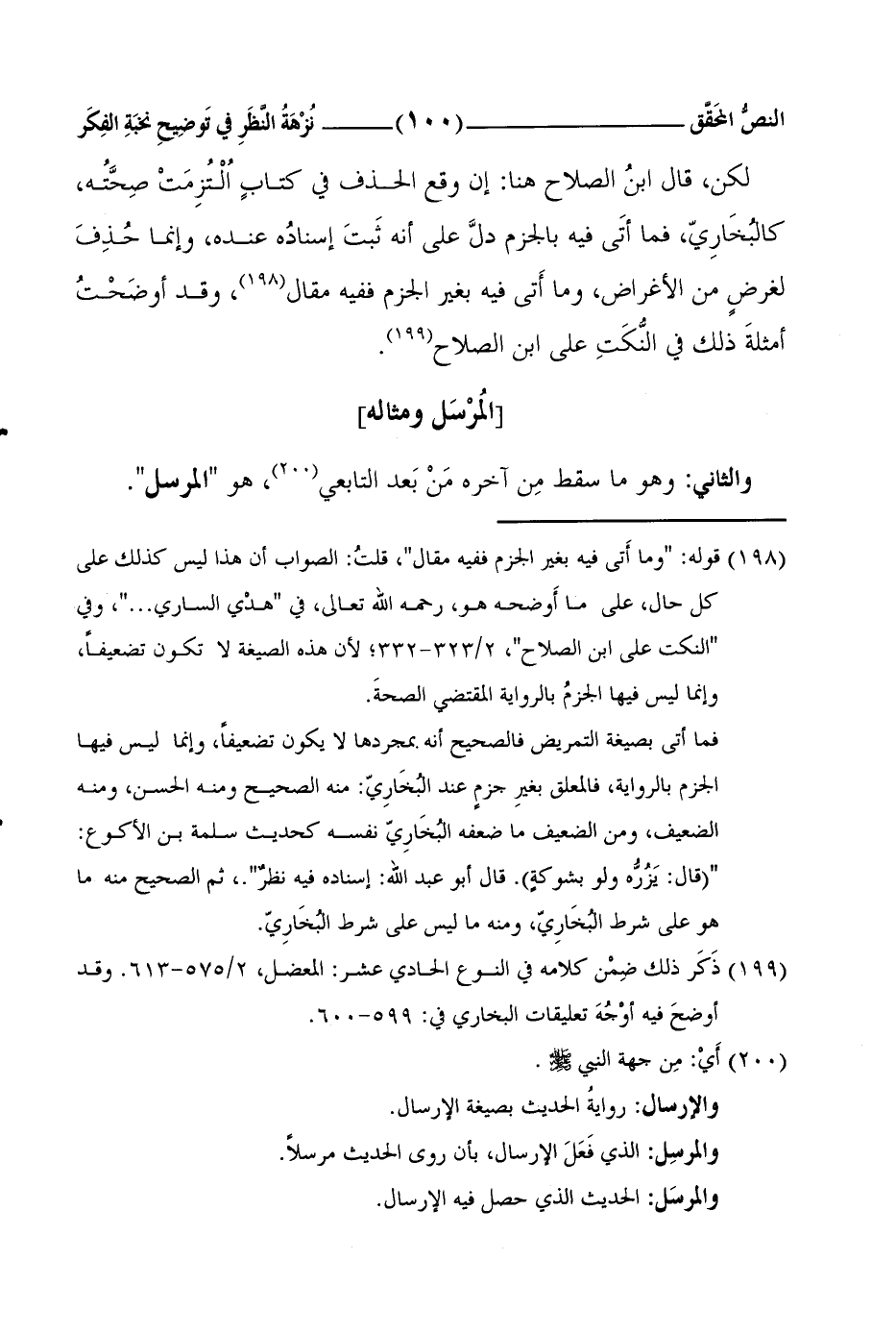 1 قوله: ومَا أَتى فيهِ بغيرِ الجَزْمِ ففيهِ مقالٌ، قلتُ: الصواب أن هذا ليس كذلك على كل حال، على ما أَوضحه هو، رحمه الله تعالى، في هدْي الساري ... ، وفي النكت على ابن الصلاح، 2/323-332؛ لأن هذه الصيغة لا تكون تضعيفاً، وإنما ليس فيها الجزمُ بالرواية المقتضي الصحةَ.