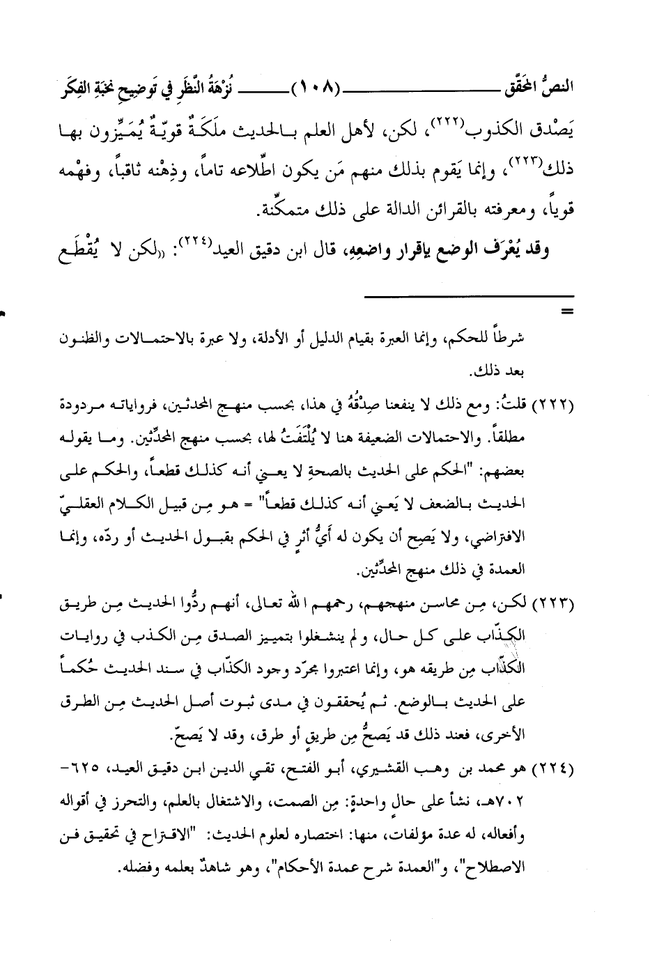 3 هو محمد بن وهب القشيري، أبو الفتح، تقي الدين ابن دقيق العيد، 625-702هـ، نشأ على حالٍ واحدةٍ: مِن الصمت، والاشتغال بالعلم، والتحرز في أقواله وأفعاله، له عدة مؤلفات، منها: اختصاره لعلوم الحديث: الاقتراح في تحقيق فن الاصطلاح، والعمدة شرح عمدة الأحكام، وهو شاهدٌ بعلمه وفضله.