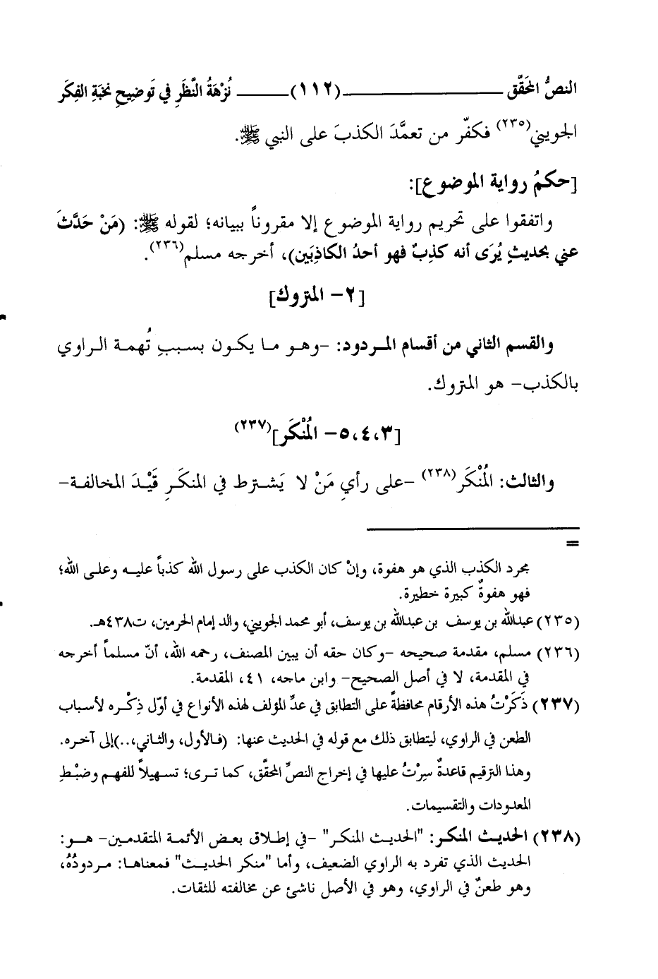 1 ذَكَرْتُ هذه الأرقام محافظةً على التطابق في عدِّ المؤلف لهذه الأنواع في أوّل ذِكْره لأسباب الطعن في الراوي، ليتطابق ذلك مع قوله في الحديث عنها: فالأول، والثاني،..إلى آخره. وهذا الترقيم قاعدةٌ سِرْتُ عليها في إخراج النصِّ المحقَّق، كما ترى؛ تسهيلاً للفهم وضبْطِ المعدودات والتقسيمات.