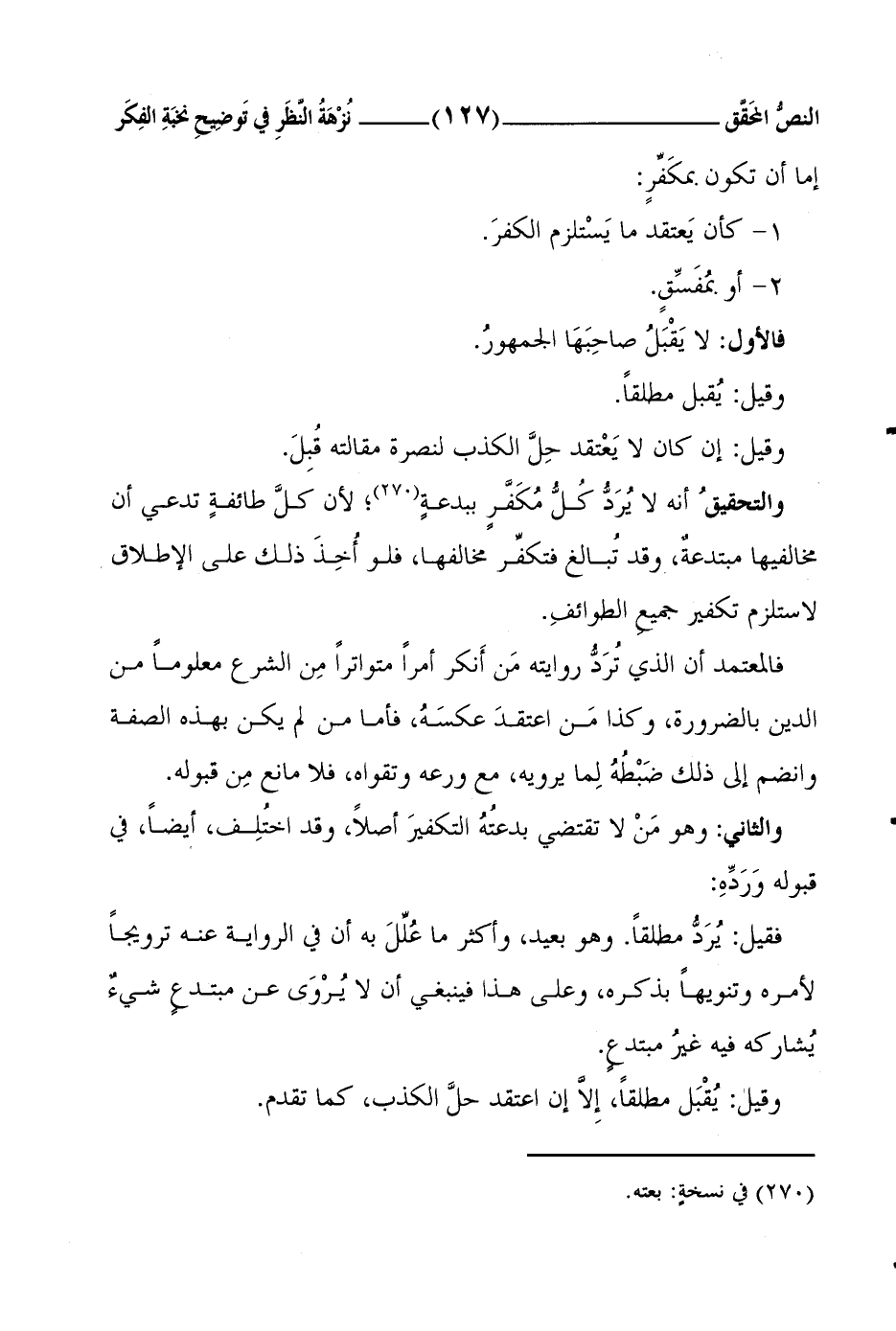 كتاب نزهة النظر في توضيح نخبة الفكر ت الرحيلي