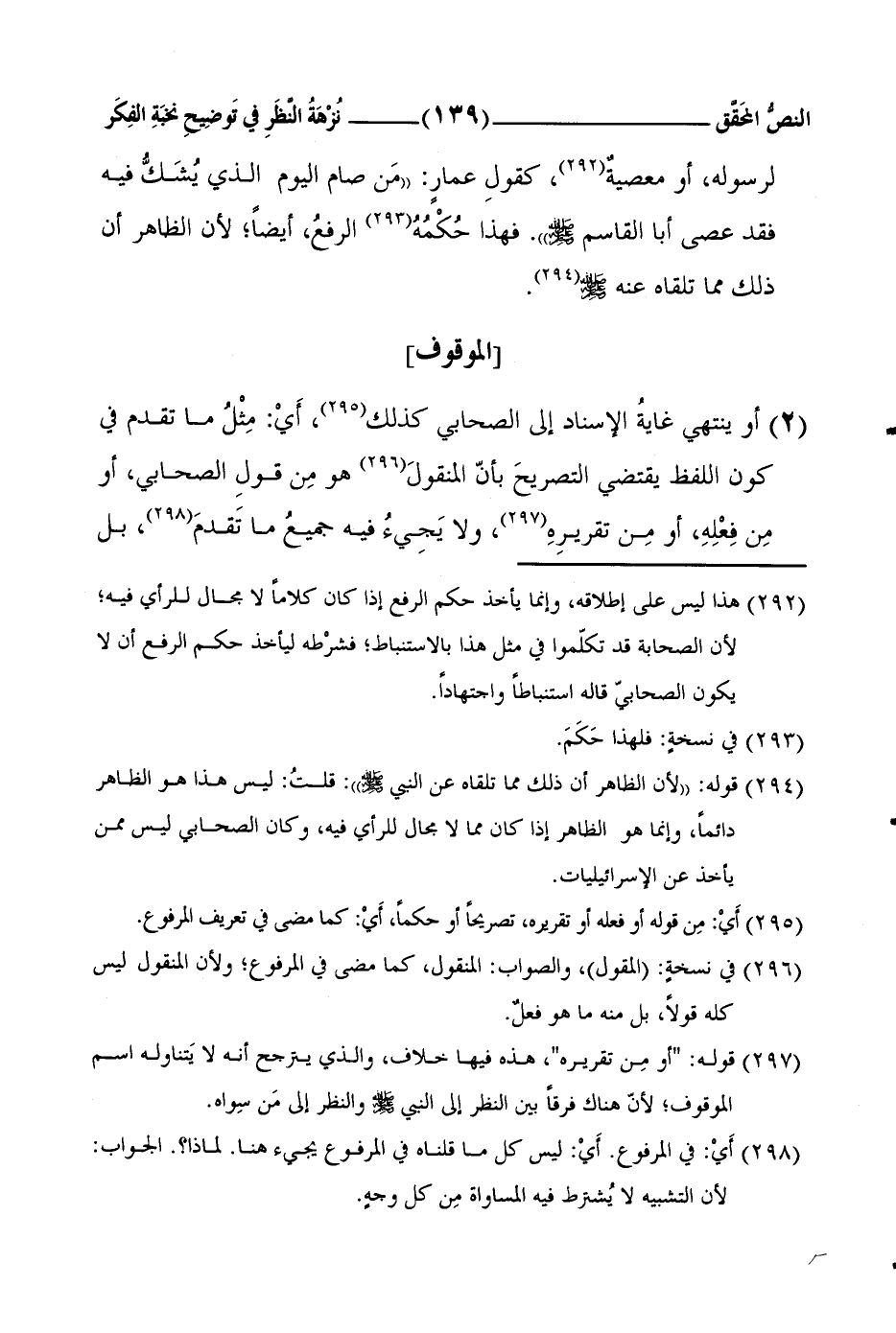 3 قوله: أو مِن تقريره، هذه فيها خلاف، والذي يترجح أنه لا يَتناوله اسم الموقوف؛ لأنّ هناك فرقاً بين النظر إلى النبي صلى الله عليه وسلم والنظر إلى مَن سِواه.