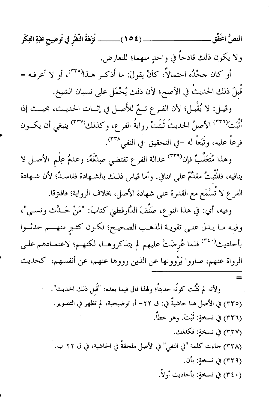 وقيلَ: لا يُقْبل؛ لأنَّ الفرعَ تبعٌ للأَصل في إِثباتِ الحَديثِ، بحيث إذا أَثْبَتَ2 الأصلُ الحديثَ ثَبتَتْ روايةُ الفرع، وكذلك3 ينْبَغي أَنْ يكونَ فرعاً عليهِ، وتَبَعاً لهُ -في التحقيق-في النفي4.