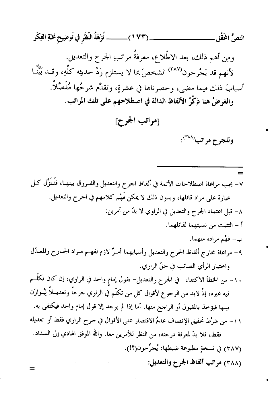 8- قبل اعتماد الجرح والتعديل في الراوي لا بدّ من أمرين: