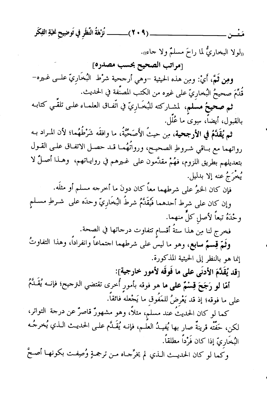 ومِن ثَمَّ، أَيْ: ومِن هذه الحيثيَّةِ -وهي أَرجحيَّةُ شرْط البُخَارِيّ على غيره- قُدِّمَ صحيحُ البُخارِيّ على غيرِه من الكُتُبِ المصنَّفة في الحديثِ.