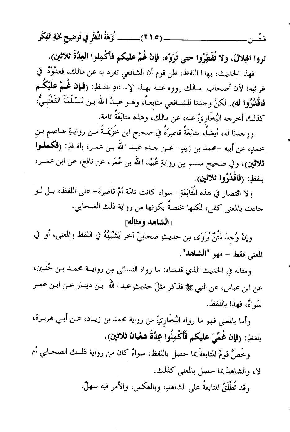 ووَجَدْنا لهُ، أَيضاً، متابَعَةً قاصِرَةً في صحيحِ ابنِ خُزَيمَةَ مِن روايةِ عاصمِ بنِ محمدٍ، عن أبيه -محمد بن زيدٍ- عن جدِّهِ عبدِ اللهِ بنِ عُمرَ، بلفظِ: "فكملوا ثلاثين"، وفي صحيح مسلم مِن روايةِ عُبَيْد اللهِ بنِ عُمَر، عن نافعٍ، عن ابنِ عُمرَ، بلفظِ: "فاقْدُرُوا ثلاثينَ".